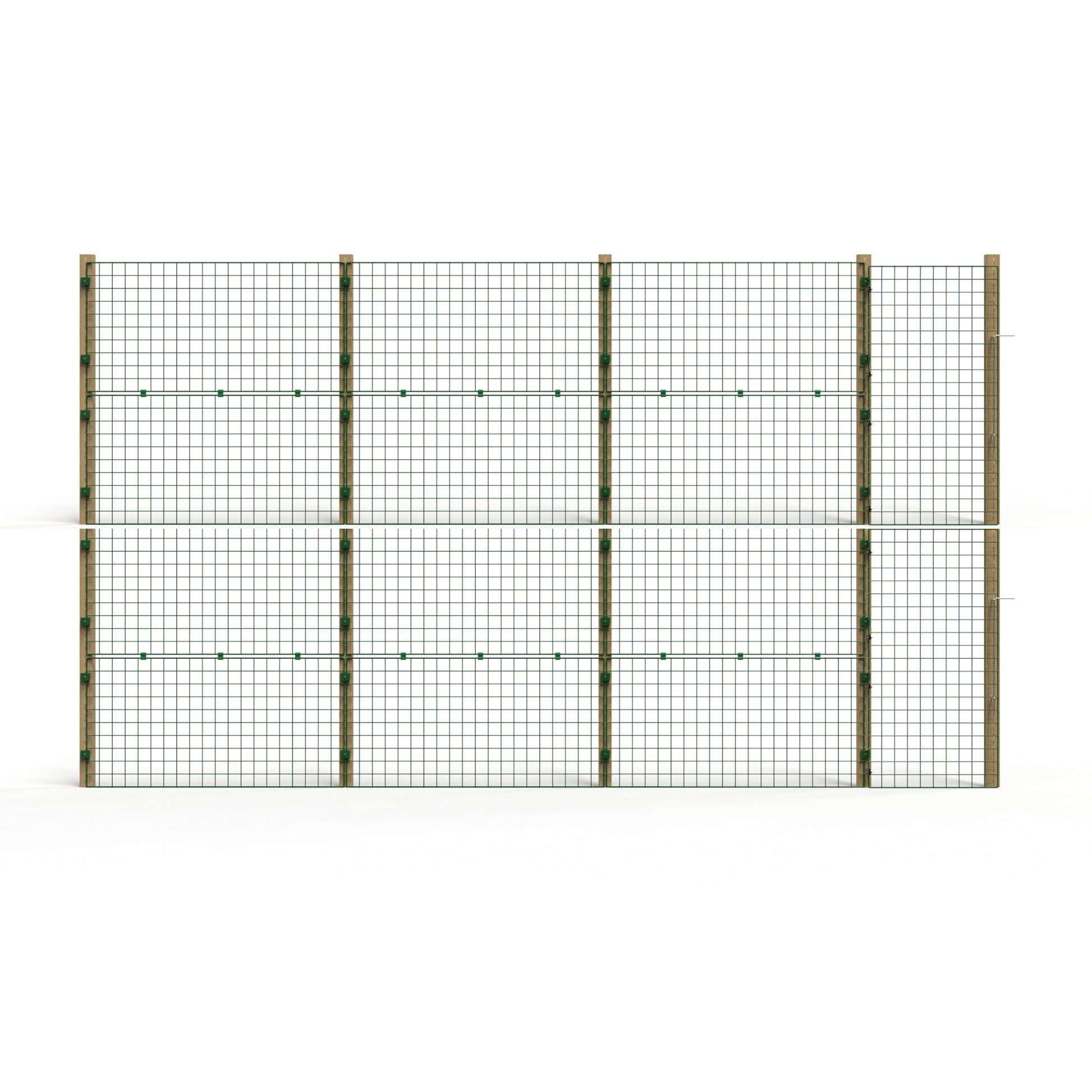 Our panels are manufactured from strong wire and are coated in PVC that aids for a longer life. The colour is an aesthetic green colour which we chose because it is pleasing to the eye and to the environment.